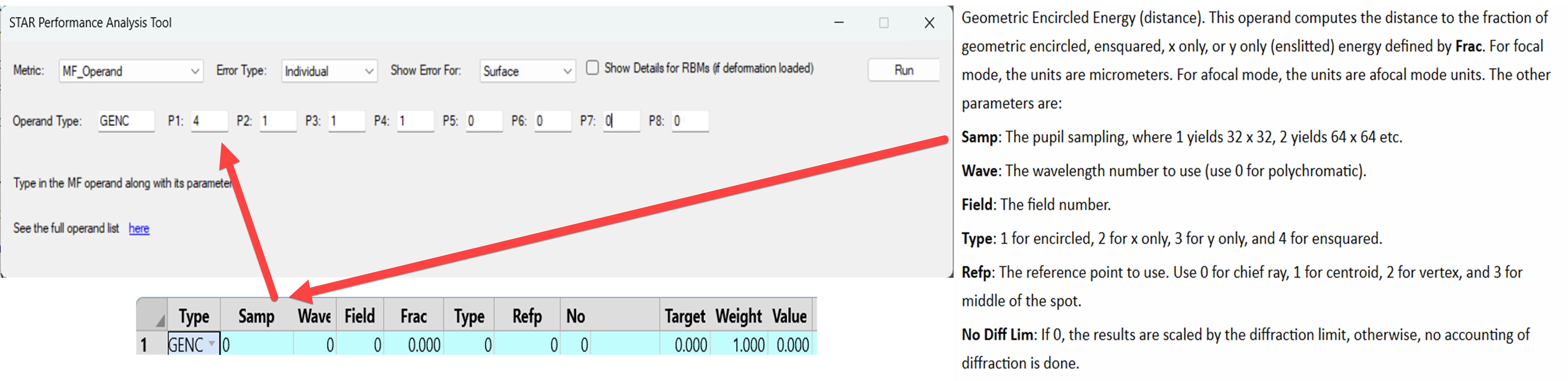 Short description – The script launches an interface in which the user can choose some pre-defined metric or define their own metric. All metrics are based on a given Merit Function Operand and all parameters which do apply to the chosen operand type must be set accordingly to get a valuable result: