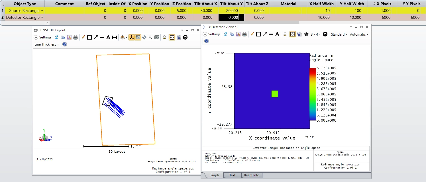 However, when using the Detector viewer/radiance space, I found different angles than anticipated.