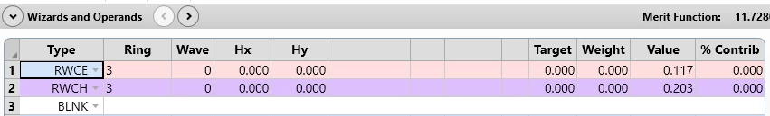 At this point I wasn’t sure what to trust, but after digging a little more I convinced myself that the merit function operands were reporting the correct values, but the plots are displaying incorrectly (Chief Ray shows Centroid, Centroid shows Chief Ray).