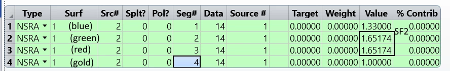 operand and Data=14 to see the refractive index of the ray at different segments in the optical path...this can help with the order of objects in the NSCE.